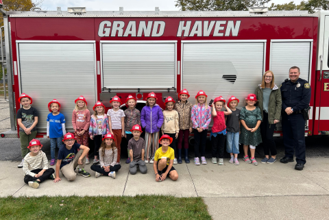 Ryan had the pleasure of sponsoring Fire Prevention Day at Grand Haven Christian this year. Officer Kelvin Miller from Grand Haven Public Safety gave presentations to classrooms and brought a fire truck for the students to walk through.